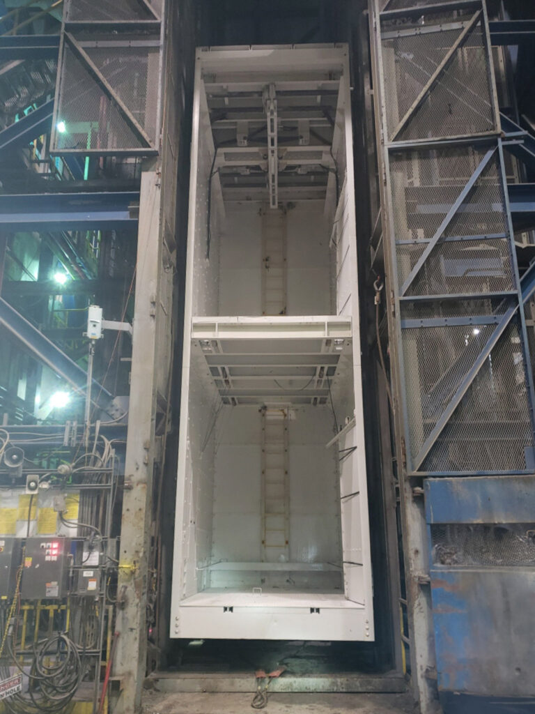 Fortis was contracted to assist our client with the replacement of their service cage in their shaft. Fortis personnel work together with the client’s shaft and maintenance crews to complete the removal and the installation of their multi deck 28,000lbs service cage that runs on ridged guides.