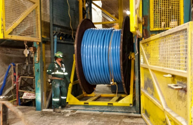 Fortis supplied all personel and equipment to install new 15kv Prysmian Airguard 350MCM shaft feeder cables. It was Installed from a cable reel mounted in the service cage bail as hoisted from underground to surface installing in CMP Zenith cable cleats on custom designed shaft brackets along the way.